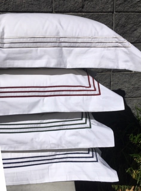 FINALLY! My bed looks finished! I have the blissful Euros at the back (in place of the headboard for now) and the gorgeous triple thread Pillows (four of them – they drive my husband mad and he constantly refers to When Sally Met Harry!). And the triple thread fold down sheet looks amazing.