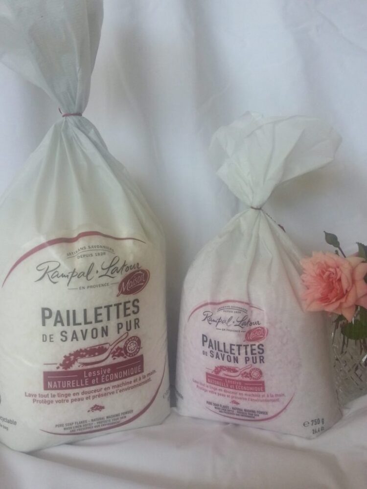 But a few of us take great and secret pleasure in laundering our linen. I am always on the lookout for delicious smelling laundry soaps. I like my bed linen to smell really nice. It is such a pleasure at the end of the day to slip into a freshly made bed. So, I was thrilled when I came across the Paillettes de Savon Pur, in Rose and Natural. I have washed the bed linen for my son in the Natural, as this has a soft clean fresh smell without being fragrant. And I wash the bedlinen for my daughter and ourselves in the Rose as I am a rose addict. The sheets are soft and clean smelling (even when dried in the dryer!).